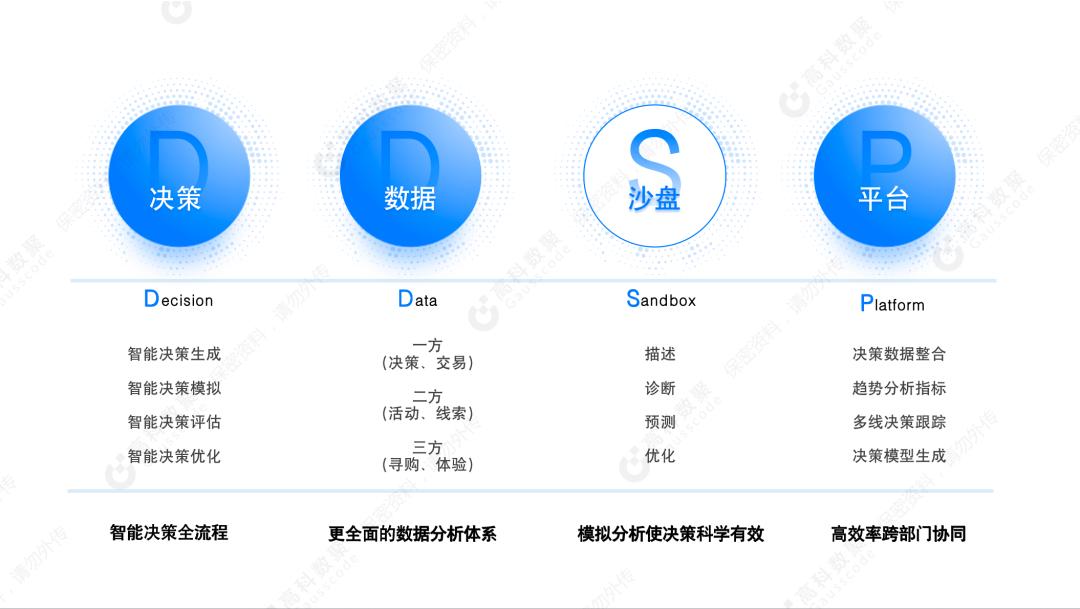 董琳介绍到,ballbet贝博推出ballbet贝博智慧决策平台DDSP(Decision Data Sandbox Platform),将从市场、销售、服务,以及智造研发等重要应用场景出发,从传统的经验主义决策方式向基于数据驱动的数智化决策全面升级。平台架设30+决策场景沙盘、三方多维数据指标、标签建设能力、百余预测决策模型能力,而且将持续在平台进行新增以及实现模型自我生长。